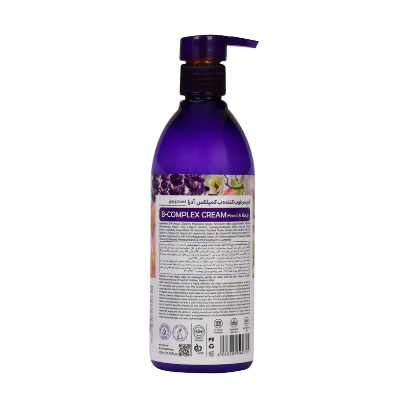 حاوی ب کمپلکس، عصارههای ارکیده، لوتوس و اسطوخودوس محافظت از پوست در برابر عوامل نامطلوب محیطی قابل استفاده برای دست، صورت و بدن افزایش حس طراوت و شادابی پوست تامین رطوبت مورد نیاز پوست مناسب انواع پوست فاقد پارابن بدون تست حیوانی