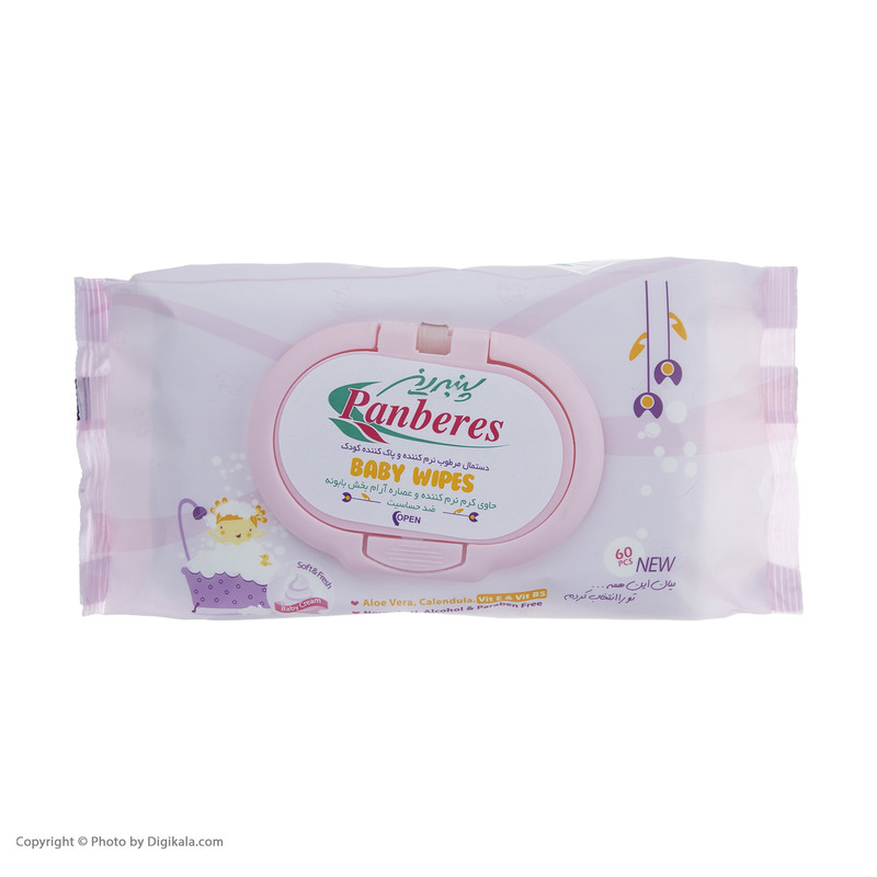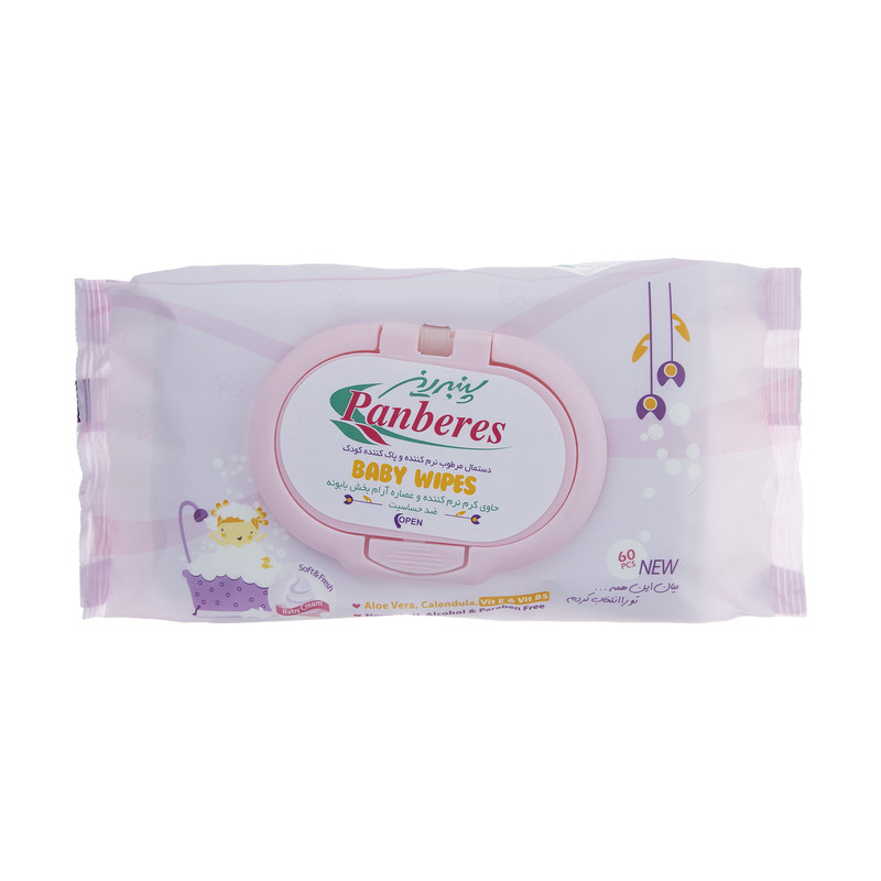 دستمال مرطوب کودک پنبه ریز مدل Baboon بسته 60 عددی