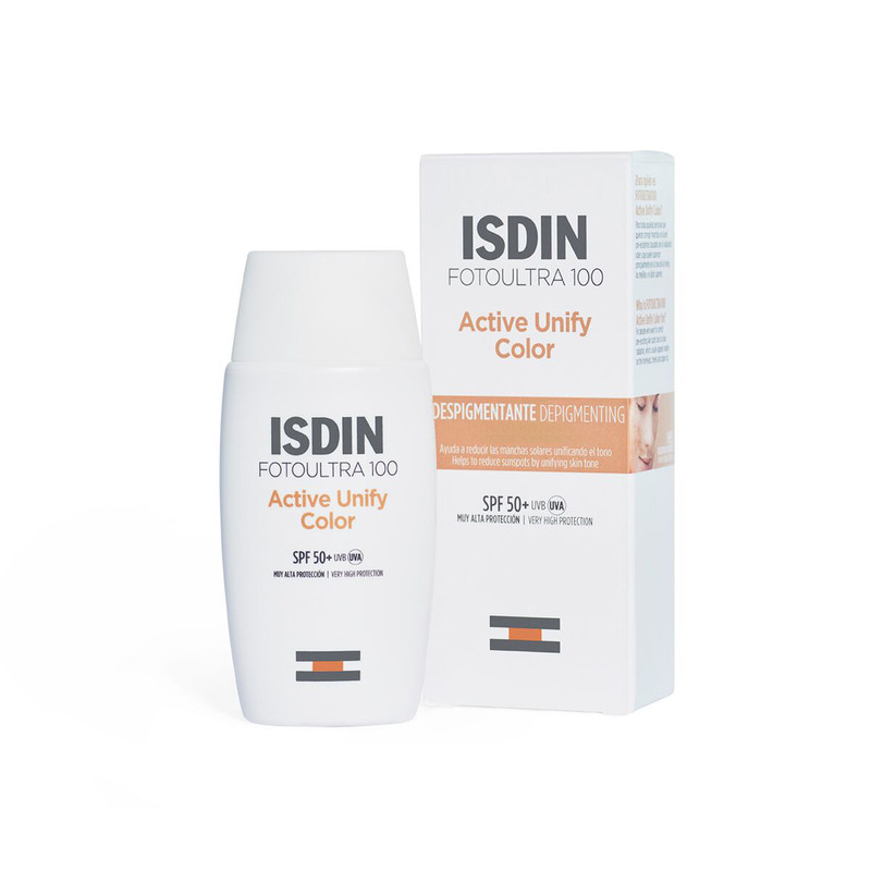 فلوئید ضد آفتاب رنگی ایزدین SPF 50 مدل Active Unify ‌مناسب انواع پوست حجم 50 میلی‌لیتر