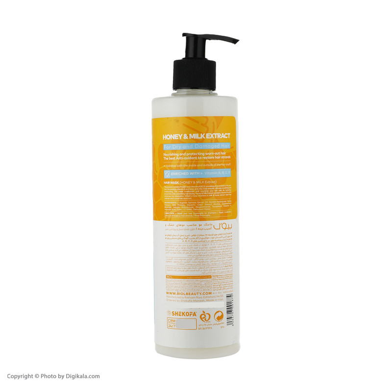 ماسک مو بیول مدل شیر و عسل حجم 500 میلی لیتر